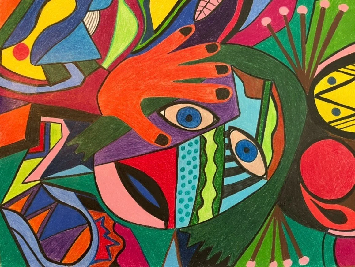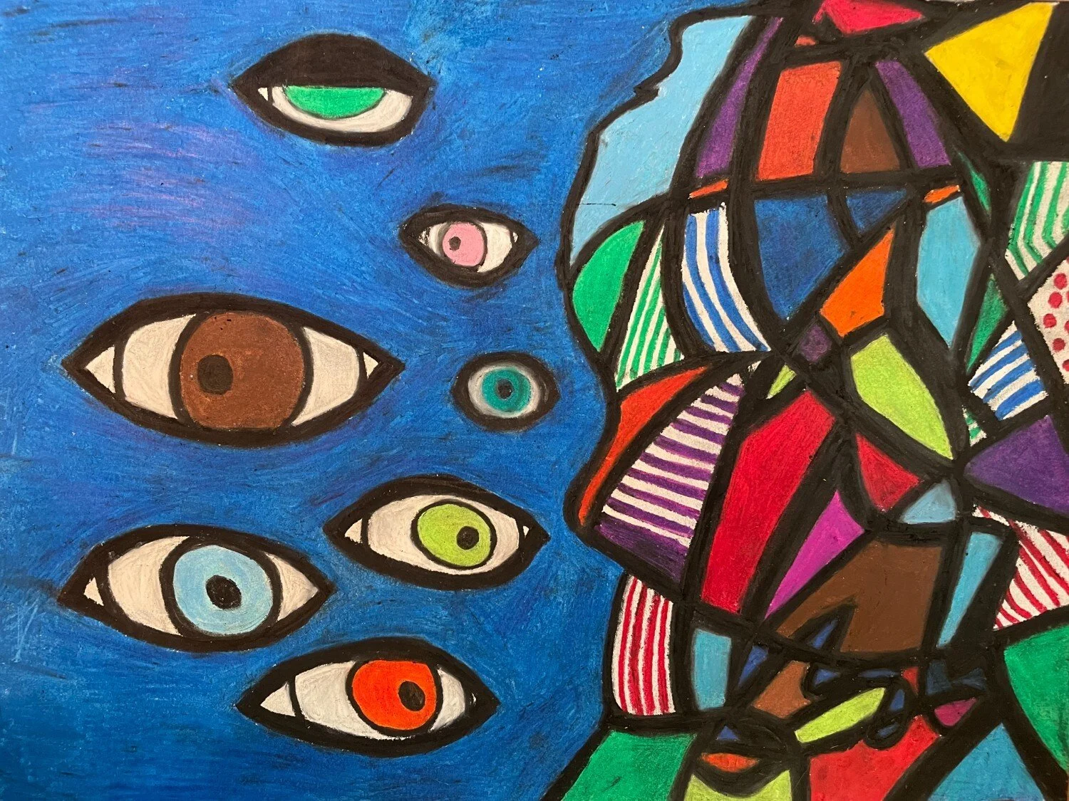 "Floating Eyes" Original Artwork by Kristin Schultz 2025 © Medium: Oil-based colored pencils on paper Size: 11"X14"