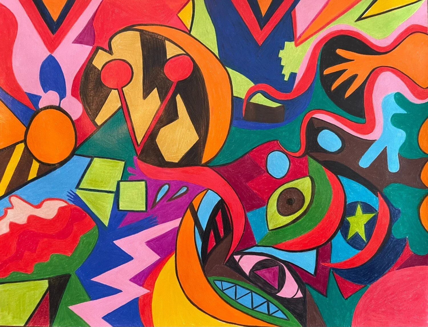 "Dissociation" Original Artwork by Kristin Schultz 2025 © Medium: Oil-based colored pencils on paper Size: 11"X14"